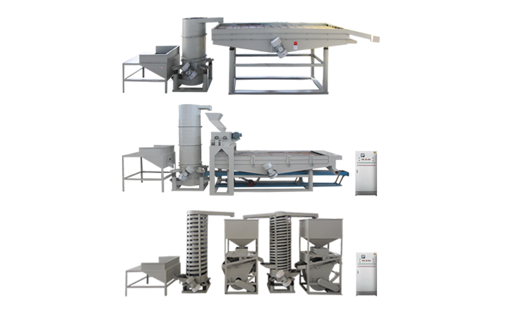 Данное оборудование может выполнять следующие процессы: калибровка, шелушение и сепарация абрикосовой косточки/фундука/миндаля.