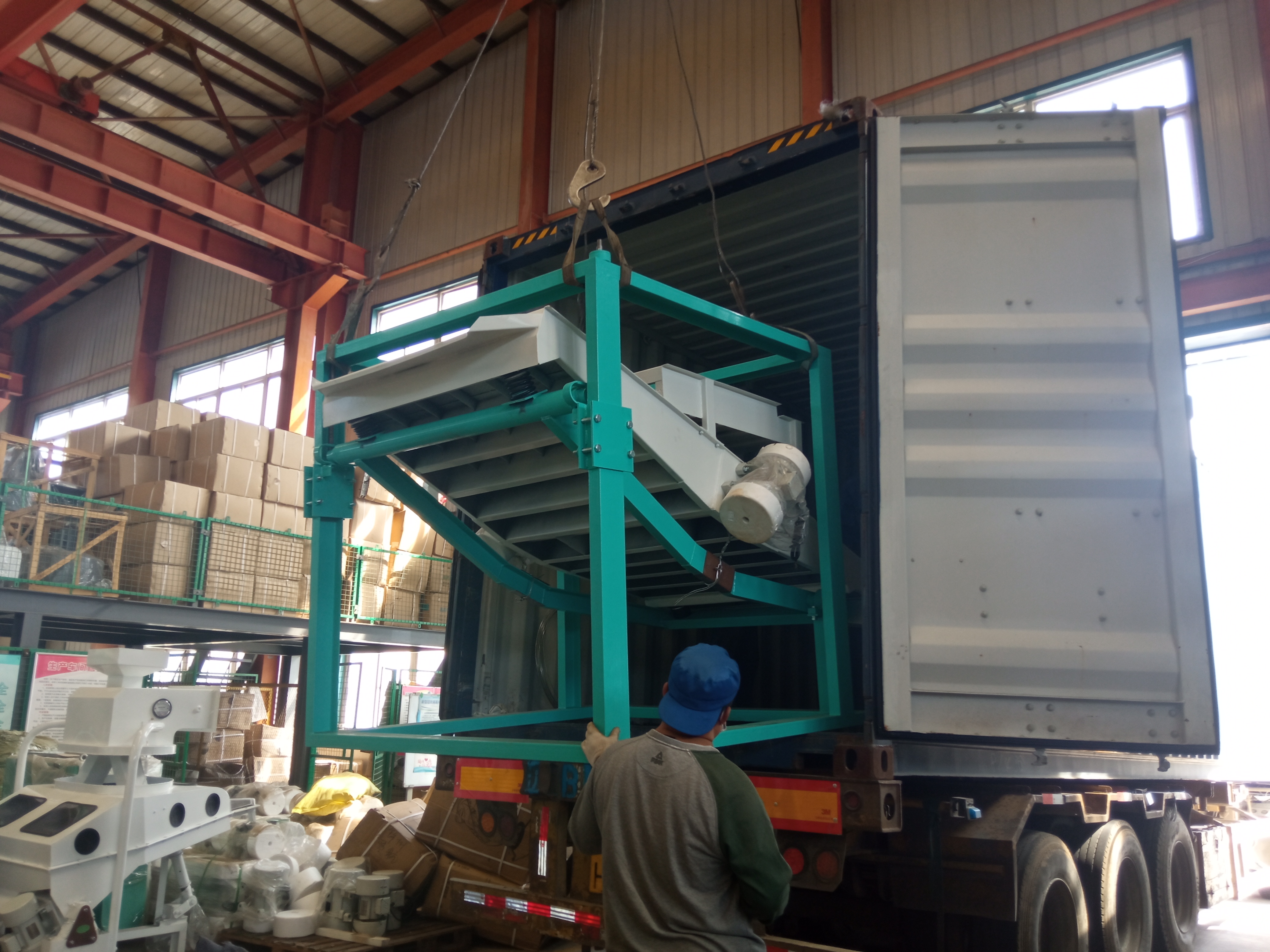 Liaoning Qiaopai Machineries Co., Ltd.экспортирует оборудование для шелушения  и сепарации семян подсолнечника TFKH-1500 и Z  \ C-образный ковшовый элеватор в Россию.